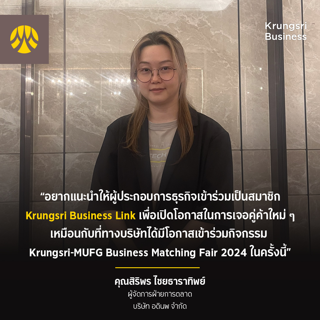 Krungsri Business Link แพลตฟอร์มจับคู่ธุรกิจ เชื่อมทุกโอกาสทางธุรกิจ เป็นบริการที่ธนาคารกรุงศรีริเริ่มขึ้น เพื่อสนับสนุนธุรกิจในการขยายตลาดผ่านแพลตฟอร์มออนไลน์ ซึ่งประกอบไปด้วย 1) บริการจับคู่ธุรกิจ 2) การสร้างพื้นที่ในการนำเสนอสินค้าและบริการ 3) การหาพันธมิตรทางธุรกิจเพื่อความร่วมมือในด้านอื่น ๆ ทางออนไลน์ได้อย่างสะดวกรวดเร็ว ไร้พรมแดน ผ่านทางเครือข่ายที่เชื่อถือได้ของกรุงศรีและสถาบันการเงินในกลุ่มมิตซูบิชิ ยูเอฟเจ ไฟแนนเชียลกรุ๊ป (MUFG Group) ทั้งบริษัทไทยและต่างประเทศบนแพลตฟอร์ม เพื่อช่วยให้ผู้ประกอบการสามารถขยายโอกาสธุรกิจอย่างมั่นใจ