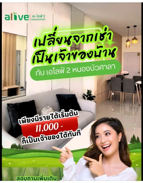 อยากได้ของดี ราคาคุ้มค่า ทำเลงาม ต้องจองโครงการ เอไลฟ์ 2 (หนองบัวศาลา) ค่าเช่ามาผ่อนเป็นเจ้าของได้เลย