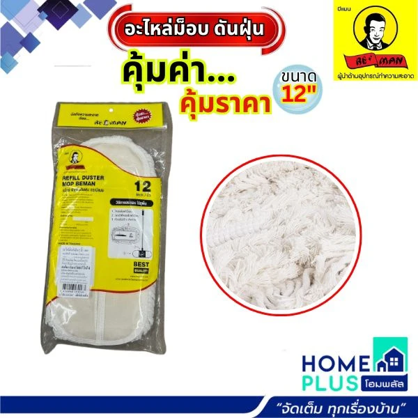 อะไหล่ม็อบดันฝุ่น BE MAN ขนาด 12 นิ้ว สีขาว