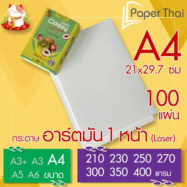 กระดาษอาร์ตมัน 1 หน้า (Laser) ขนาด A4 จำนวน 100 แผ่น PaperThai หนา 210 230 250 270 300 350 400 แกรม