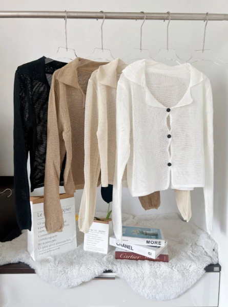 สื้อคลุมผ้าไหมพรมตาข่าย ซีทรู งานแฟชั่นKorea style Knitting fashion เนื้อดีไม่ระคายผิวแน่นอน น่ารักสวยใส่เป็นเสื้อคลุมแบบ everyday look สไตล์เกาหลีสุดๆ สาวๆห้ามพลาดน๊า มี 4 สี ขาว,ดำ,ครีม,น้ำตาล ค่าจัดส่ง 29 บาท ( พื้นที่ห่างไกลเพิ่ม 50 บาท คะ) อกได้ถึง 32”-38” ความยาว21” สีสวย ตามภาพ