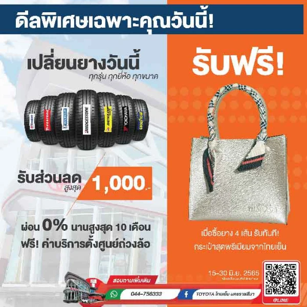 เปลี่ยนยางครบ4เส้นรับฟรีกระเป๋าไทยเย็น