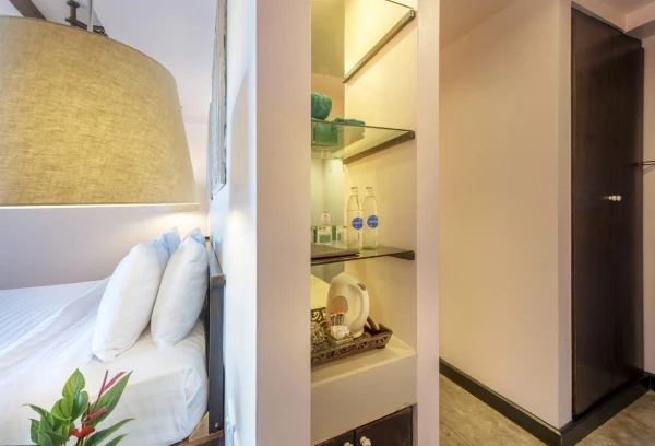Located on higher floor levels, this room offers features floor-to-ceiling windows and a private wood furnished balcony with seating area, offering garden or partial Andaman Sea views