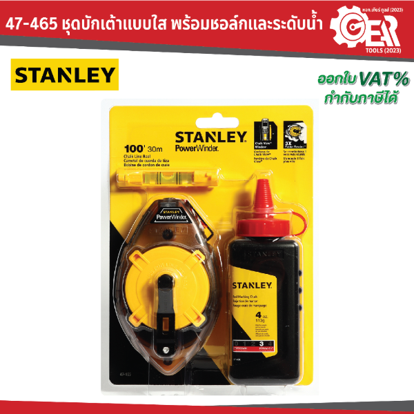 STANLEY รุ่น 47-465 ปักเต้าตีเส้นแบบใส ยาว 30 เมตร พร้อมชอร์คสีแดงและระดับน้ำ