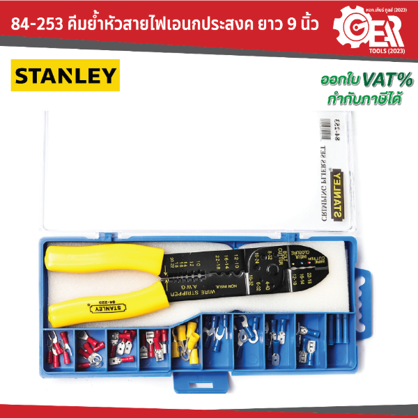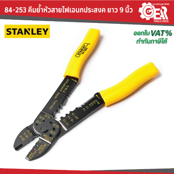 STANLEY รุ่น 84-253 คีมย้ำหัวสายไฟเอนกประสงค์ (ตัด ปอก ย้ำ) ยาว 9 นิ้ว พร้อมหางปลาในกล่อง
