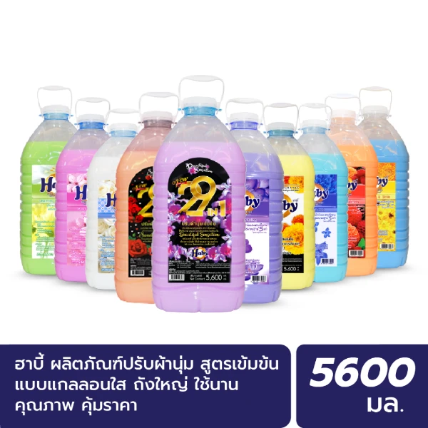 HABY ผลิตภัณฑ์ปรับผ้านุ่ม ขนาด 5600 มิลลิลิตร เอกลักษณ์ถังขนาดใหญ่ แบบแกลลอนใส ให้ความหอมติดทนนาน ถนอมเส้นใยผ้า และเป็นมิตรกับสิ่งแวดล้อม ถังใหญ่ ใช้นาน คุณภาพ คุ้มราคา คุ้มค่า คุ้มราคามากกว่าด้วยความเข้มข้นติดทนนาน ให้ผ้าหอมนุ่ม หอมนานขึ้น ประสบการณ์มากกว่า 10 ปี ในการผลิต ทั้งใน และต่างประเทศ ผลิตด้วยเทคโนโลยีทันสมัยได้มาตรฐาน ISO: 9001, มาตรฐาน GHPs & HACCP เเละ Green Industry