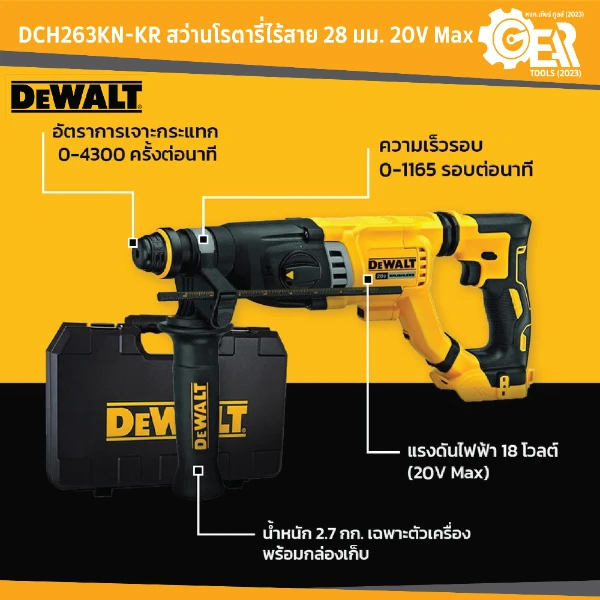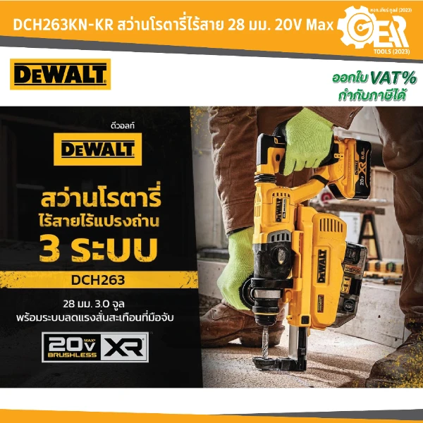 - DEWALT รุ่น DCH263KN-KR สว่านโรตารี่ไร้สายไร้แปรงถ่าน 28 มม. 20V Max (เฉพาะตัวเครื่อง)