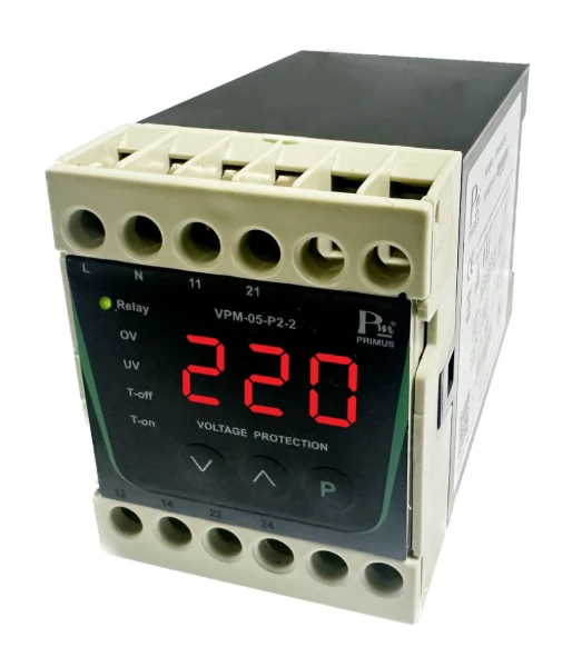 คุณสมบัติ • VPM-05 เป็น Relay สำหรับป้องกันไฟตก-ไฟเกิน, เฟสไม่สมดุล และสลับเฟส • มีระบบทั้งไฟ 1-Phase 2 Wires และ 3-Phase 3 Wires/4 Wires • วัดค่าได้เที่ยงตรงแบบ True RMS • แสดงผลค่าแรงดันไฟฟ้าด้วย 7-Segment LED 3 หลัก ขนาด 0.39 นิ้ว • มีขั้นตอนการต่อและตั้งค่าที่ง่ายต่อการใช้งาน • รีเลย์เอาท์พุทขนาด 5 A, 250 VAC, DPDT • ติดตั้งแบบ DIN Rail • LED แสดงสถานะของรีเลย์เอาท์พุท • มี Memory สำหรับบันทึกการทริปครั้งล่าสุด (Last Fault) สอบถามข้อมูลเพิ่มเติม www.primusthai.com Tel.090-197-9601 ID Line : @primusthai E-Mail : sales@primusthai.com